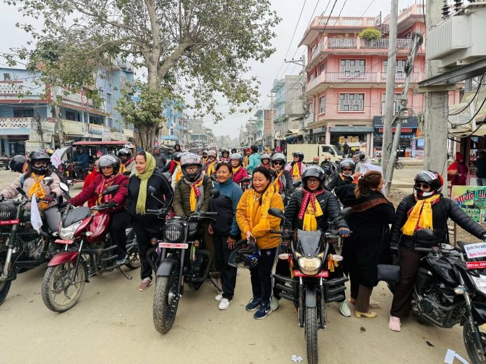 रेडियो उदयपुर ,पुस १५ । उदयपुरका महिलाहरूले महिला सशक्तिकरण, न्याय र समानताको नारासहित मंगलबार मोटरसाइकल यात्रा गरेका छन्। ‘महिला सशक्तिकरण, आत्मनिर्भरता र समान अधिकार’को सन्देश फैलाउने उद्देश्यसहित आयोजित उक्त यात्रामा महिलाहरूले गाईघाटदेखि चतारासम्म मोटरसाइकल यात्रा गरेका हुन्।