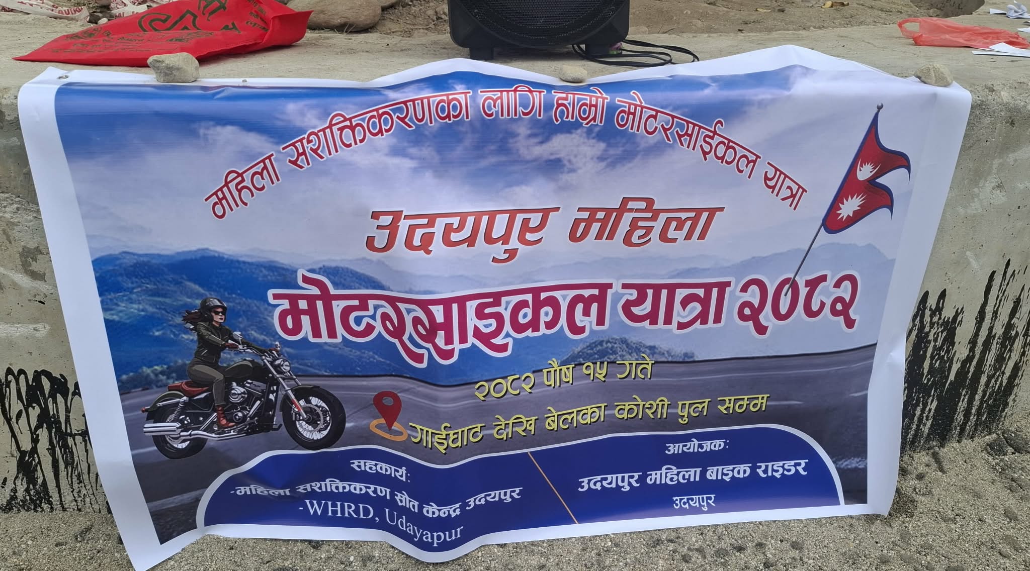 महिला बाइक राइडर उदयपुरका संयोजक रमा मगरले महिला सशक्तिकरणका लागि मोटरसाइकल यात्रा सुरु गरिएको जानकारी दिनुभयो। महिलाहरूले मोटरसाइकल चलाउँदा ‘महिलाका लागि स्कुटर मात्र’ भन्ने समाजको सोचलाई चिर्दै महिलाहरू पनि पुरुषसरह सक्षम छन् भन्ने सन्देश दिन यात्राको आयोजना गरिएको उहाँले बताउनुभयो। यस यात्रामा जिल्लाका विभिन्न पालिकाबाट विभिन्न पेशा, व्यवसाय तथा सेवाक्षेत्रमा आबद्ध ५० भन्दा बढी महिला राइडरहरूको सहभागिता रहेको उहाँको भनाइ थियो।
